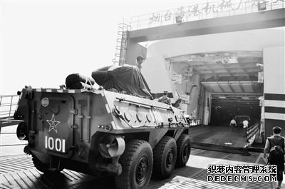 “渤海翠珠”首航前,进行了一次装载演练。记者在现场看到,数十辆装甲车、火炮、运输车等重型装备依次“钻进”船舱。济南军区某摩步旅助理工程师徐帅标和两名战友,仅仅用了2分钟时间,就将一辆装甲车固定在甲板上。速度之快让他感慨不已:“同样一辆车如果固定在火车上,可比这要费时多了。”