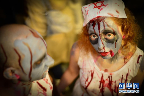 以色列狂欢节 满地爬“僵尸”(1)(4)