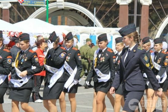 图片 俄军校女生大晒美腿 集体亮相合影(1)_第一足球网_足球比分直播-投注官网