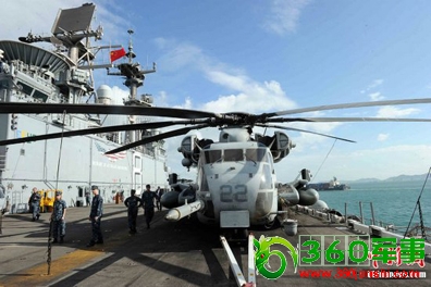 5月25日,美国海军“马金岛号”两栖攻击舰(LHD8)悬挂中国国旗访问香港。